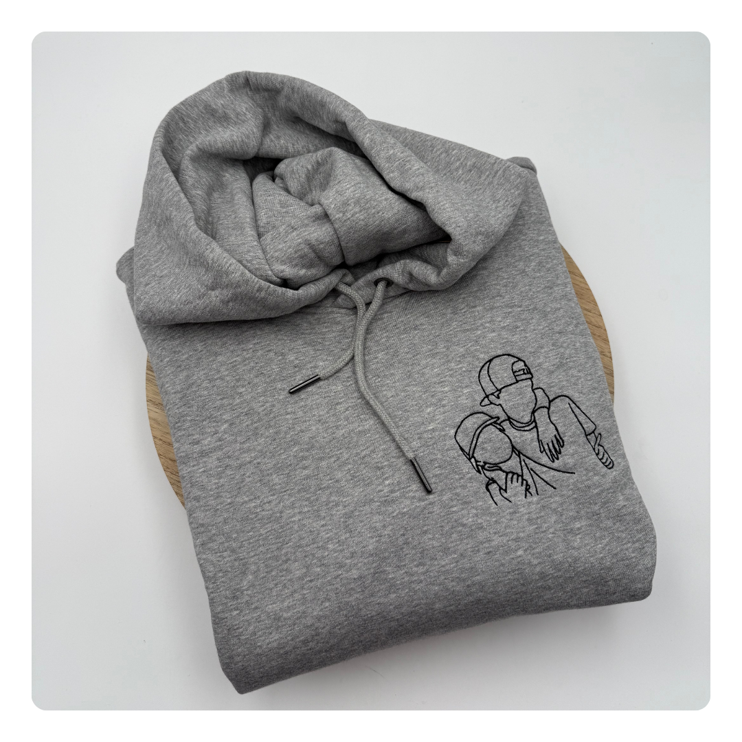 Kies zelf wat je laat borduren van een subtiele tekst tot een lijntekening of opgevulde afbeelding en maak van deze hoodie een item met betekenis.